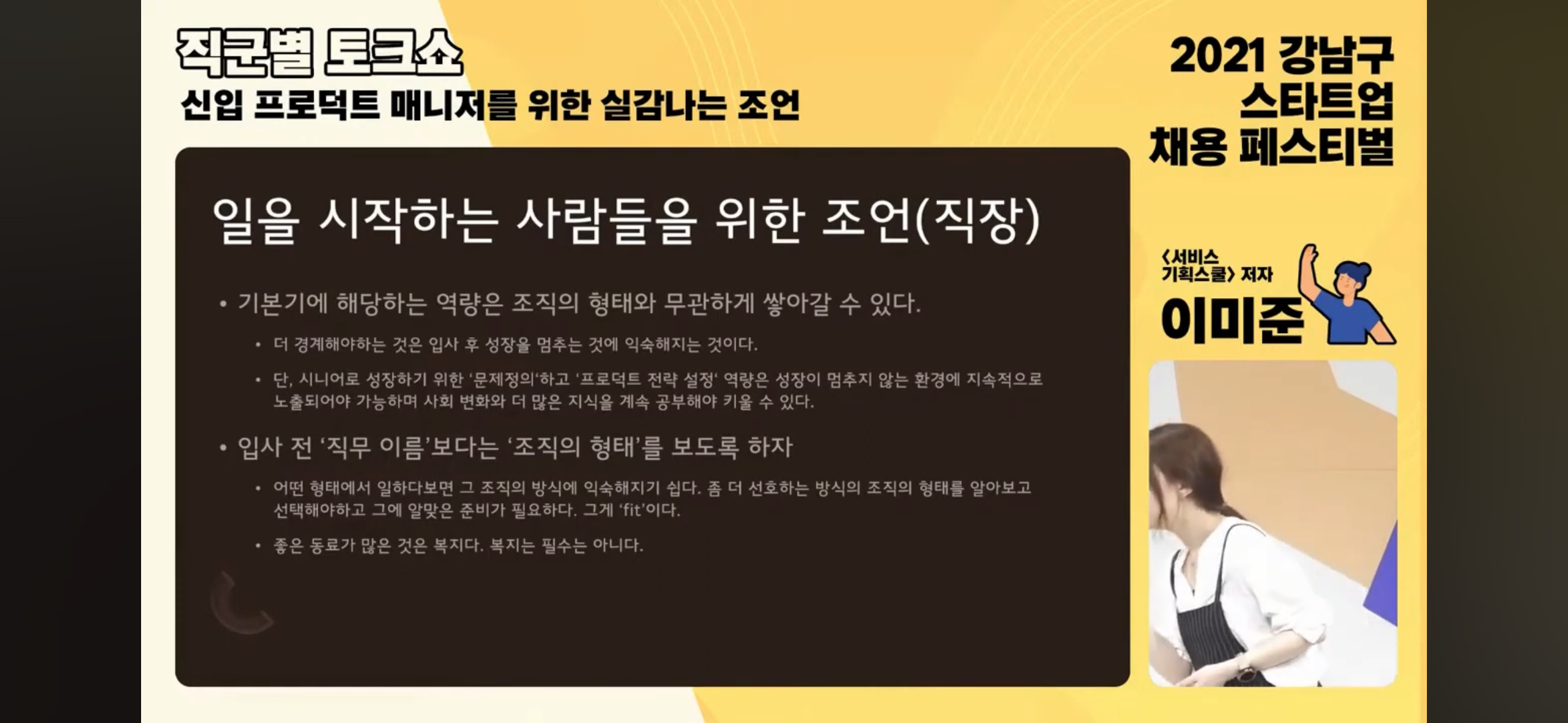주니어 포지션인데 일부는 정책쪽과, 일부는 디자인쪽과, 일부는 PM쪽과 일이 겹치는 상황. <너의 업무는 00야>처럼 일을 부여하지 않고 스스로 일을 하는 조직에서 현재 나의 포지션에서 어떤 부분을 집중해서 역량을 키우고, 어떻게 일하는게 일을 잘 하는 것인지 고민이 되어 각종 영상을 찾아보다 그 중. <도그냥>이라는 분의 영상을 찾게 됐다.