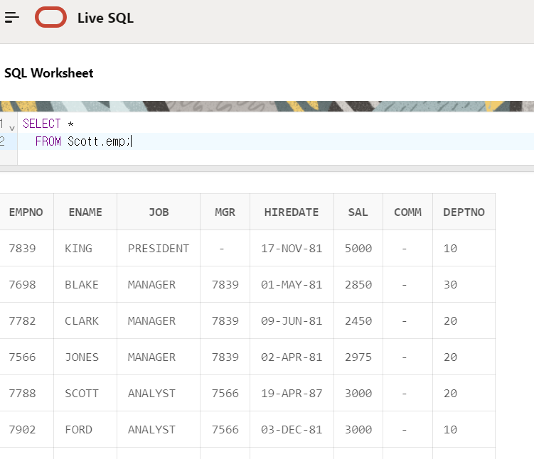 SELECT * FROM 테이블명;- 테이블에서 모든 열(컬럼) 출력